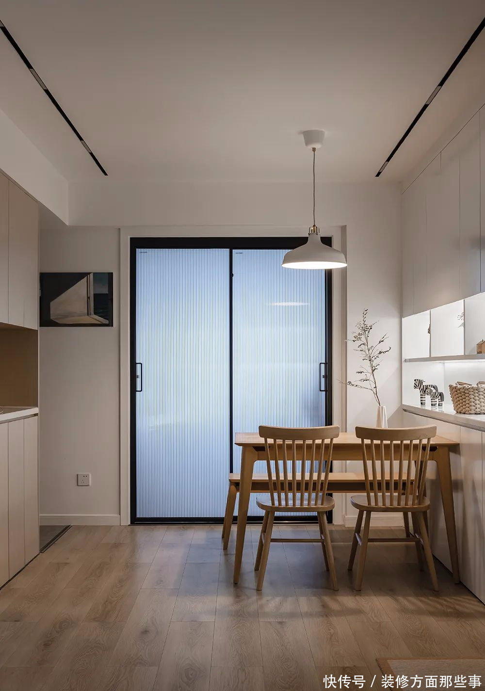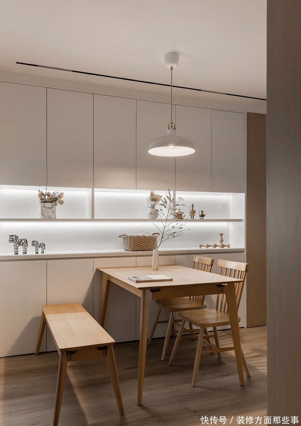 ▲?餐厅沿墙做一组餐边柜,白色的柜子与墙面一体,弱化存在感