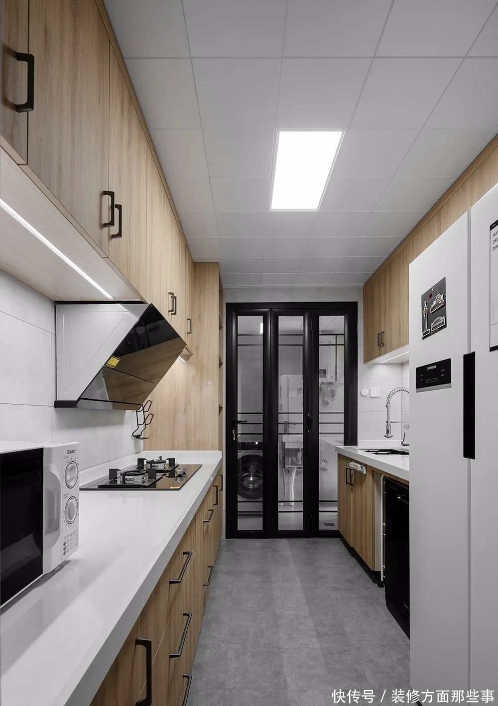▲?厨房,向公卫借空间增加料理台面和橱柜,打掉与生活阳台之间的门窗,增加采光面积