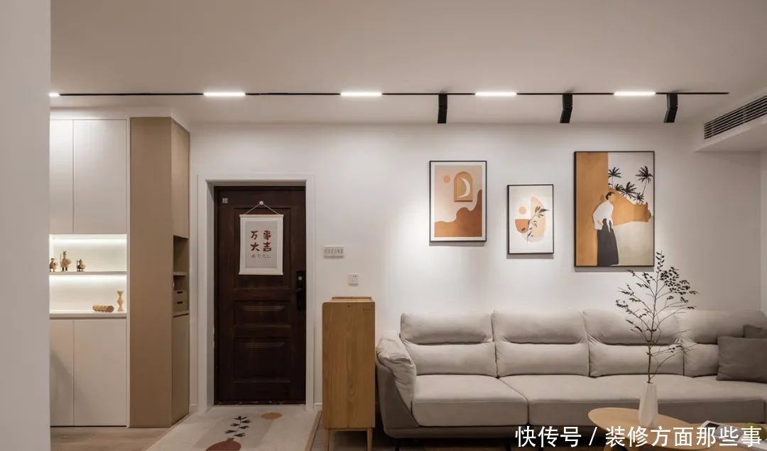 ▲?原本进门无玄关,改造后入户左侧放成品鞋柜,右边一组高柜作为收纳补充
